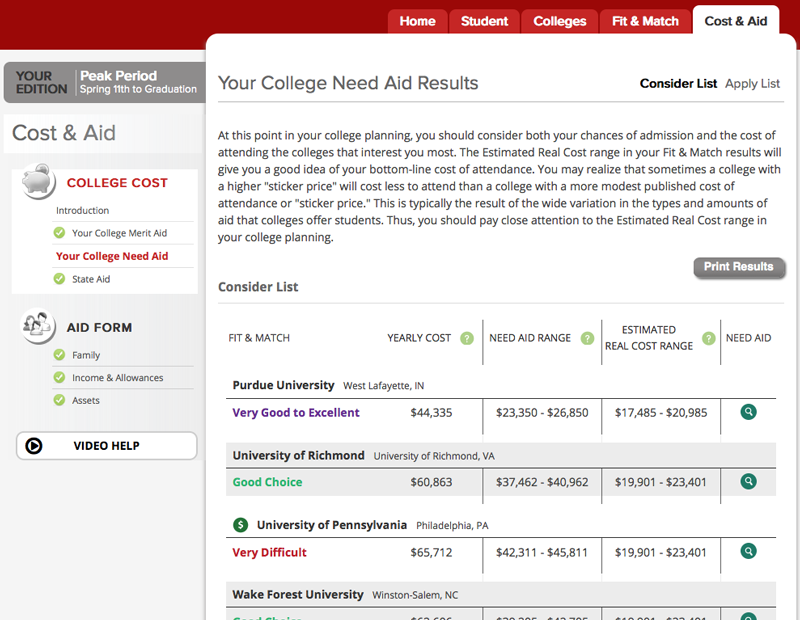 - FINANCIAL AID: Where a family stands with respect to Need and State aid (specific to each college’s and State’s own policies);